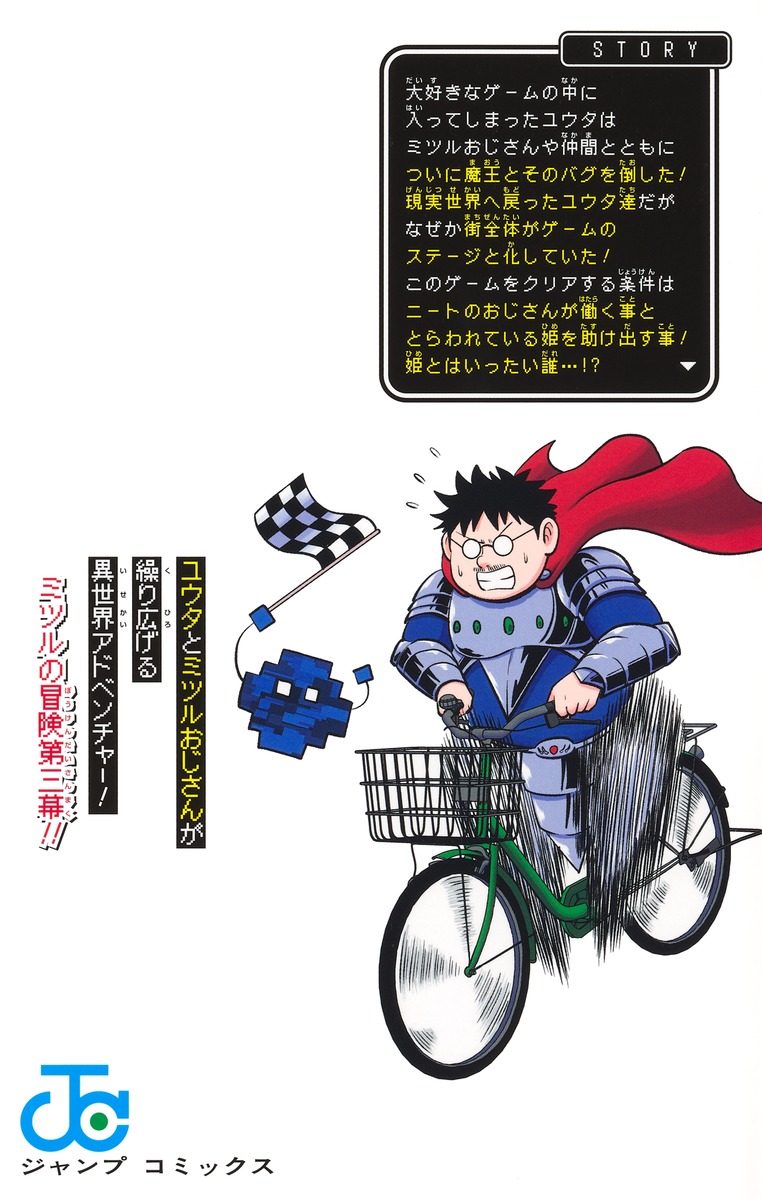 大好きなゲームの中に入ってしまったユウタはミツルおじさんや仲間とともについに魔王とそのバグを倒した! 現実世界へ戻ったユウタ達だがなぜか街全体がゲームのステージと化していた! このゲームをクリアする条件はニートのおじさんが働く事ととらわれている姫を助け出す事! 姫とはいったい誰…!?ユウタとミツルおじさんが繰り広げる異世界アドベンチャー! ミツルの冒険第三幕!!