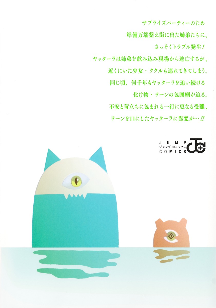 サプライズパーティーのため準備万端整え街に出た姉弟たちに、さっそくトラブル発生! ヤッターラは姉弟を飲み込み現場から逃亡するが、近くにいた少女・ククルも連れてきてしまう。同じ頃、何千年もヤッターラを追い続ける化け物・ヲーンの包囲網が迫る。不安と苛立ちに包まれる一行に更なる受難、ヲーンを口にしたヤッターラに異変が…!!