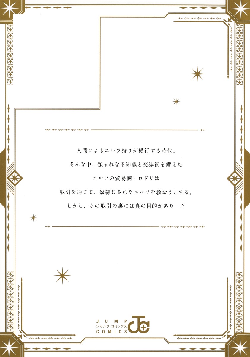 人間によるエルフ狩りが横行する時代。そんな中、類まれなる知識と交渉術を備えたエルフの貿易商・ロドリは取引を通じて、奴隷にされたエルフを救おうとする。しかし、その取引の裏には真の目的があり…!?