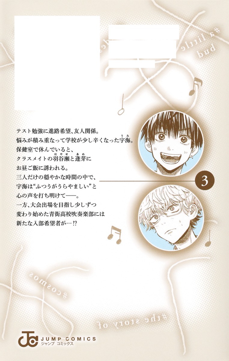 テスト勉強に進路希望、友人関係。悩みが積み重なって学校が少し辛くなった宇海。保健室で休んでいると、クラスメイトの羽谷瀬と逢芽にお昼ご飯に誘われる。三人だけの穏やかな時間の中で、宇海は“ふつうがうらやましい”と心の声を打ち明けて──。一方、大会出場を目指し少しずつ変わり始めた青街高校吹奏楽部には新たな入部希望者が…!?