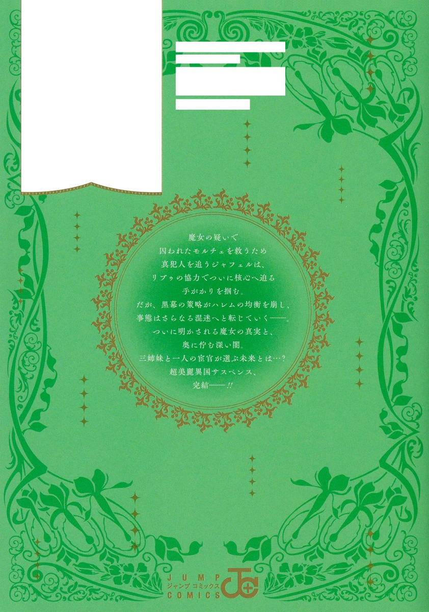 魔女の疑いで囚われたモルチェを救うため真犯人を追うジャフェルは、リブゥの協力でついに核心へ迫る手がかりを掴む。だが、黒幕の策略がハレムの均衡を崩し、事態はさらなる混迷へと転じていく──。ついに明かされる魔女の真実と、奥に佇む深い闇。三姉妹と一人の宦官が選ぶ未来とは…? 超美麗異国サスペンス、完結──!!