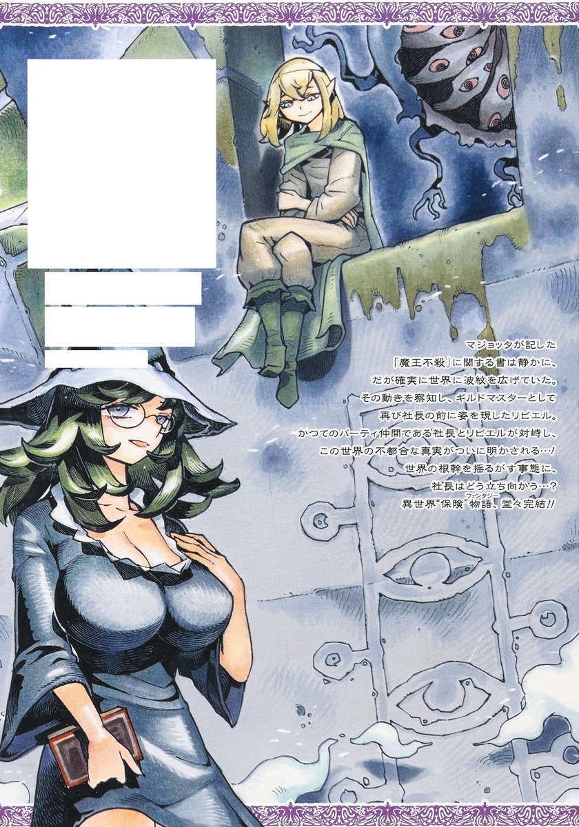 マジョッタが記した「魔王不殺」に関する書は静かに、だが確実に世界に波紋を広げていた。その動きを察知し、ギルドマスターとして再び社長の前に姿を現したリビエル。かつてのパーティ仲間である社長とリビエルが対峙し、この世界の不都合な真実がついに明かされる…! 世界の根幹を揺るがす事態に、社長はどう立ち向かう…? 異世界“保険”物語、堂々完結!!