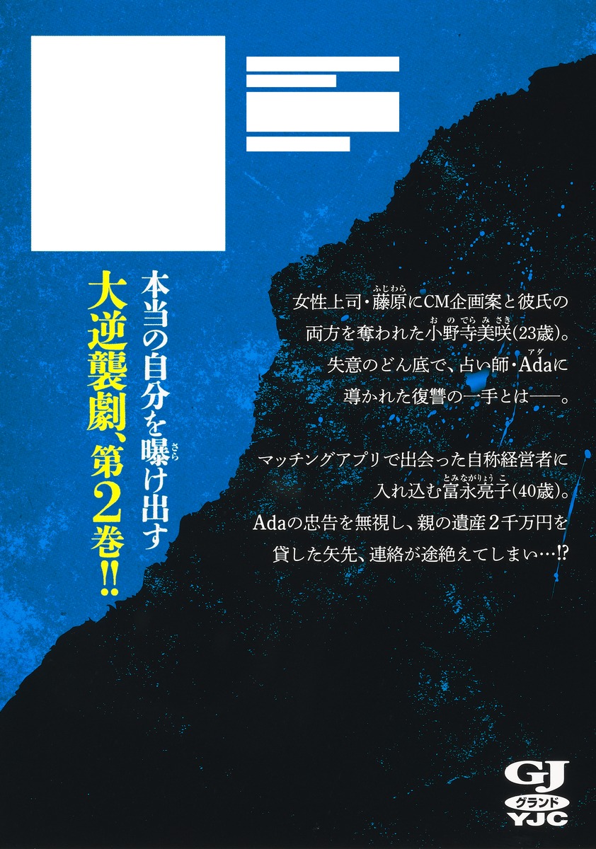 女性上司・藤原にCM企画案と彼氏の両方を奪われた小野寺美咲(23歳)。失意のどん底で、占い師・Adaに導かれた復讐の一手とは──。マッチングアプリで出会った自称経営者に入れ込む富永亮子(40歳)。Adaの忠告を無視し、親の遺産2千万円を貸した矢先、連絡が途絶えてしまい…!?本当の自分を曝け出す大逆襲劇、第2巻!!