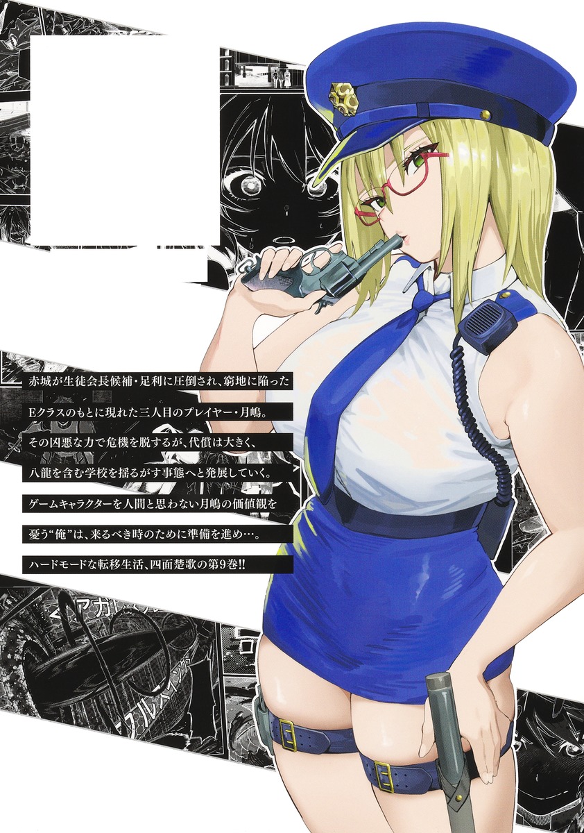赤城が生徒会長候補・足利に圧倒され、窮地に陥ったEクラスのもとに現れた三人目のプレイヤー・月嶋。その凶悪な力で危機を脱するが、代償は大きく、八龍を含む学校を揺るがす事態へと発展していく。ゲームキャラクターを人間と思わない月嶋の価値観を憂う“俺”は、来るべき時のために準備を進め…。ハードモードな転移生活、四面楚歌の第9巻!!