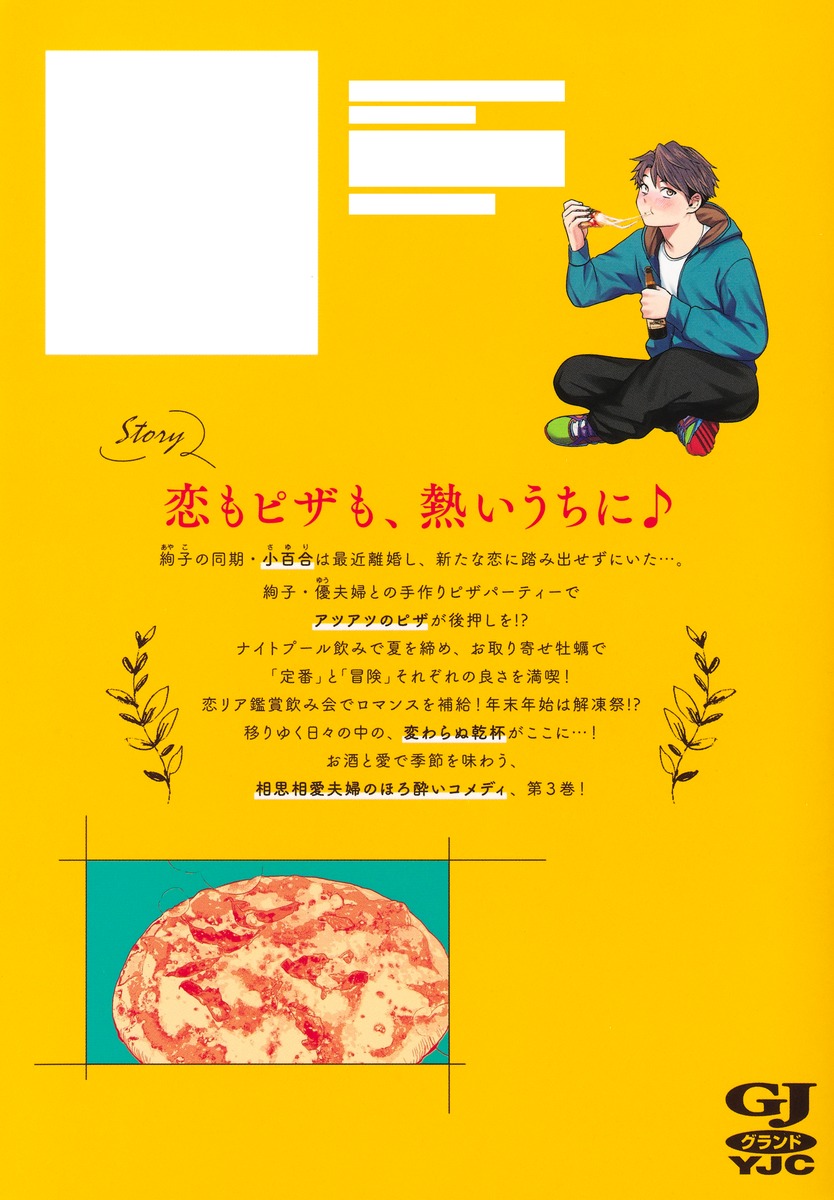 恋もピザも、熱いうちに♪絢子の同期・小百合は最近離婚し、新たな恋に踏み出せずにいた…。絢子・優夫婦との手作りピザパーティーでアツアツのピザが後押しを!? ナイトプール飲みで夏を締め、お取り寄せ牡蠣で「定番」と「冒険」それぞれの良さを満喫! 恋リア鑑賞飲み会でロマンスを補給! 年末年始は解凍祭!? 移りゆく日々の中の、変わらぬ乾杯がここに…! お酒と愛で季節を味わう、相思相愛夫婦のほろ酔いコメディ、第3巻!