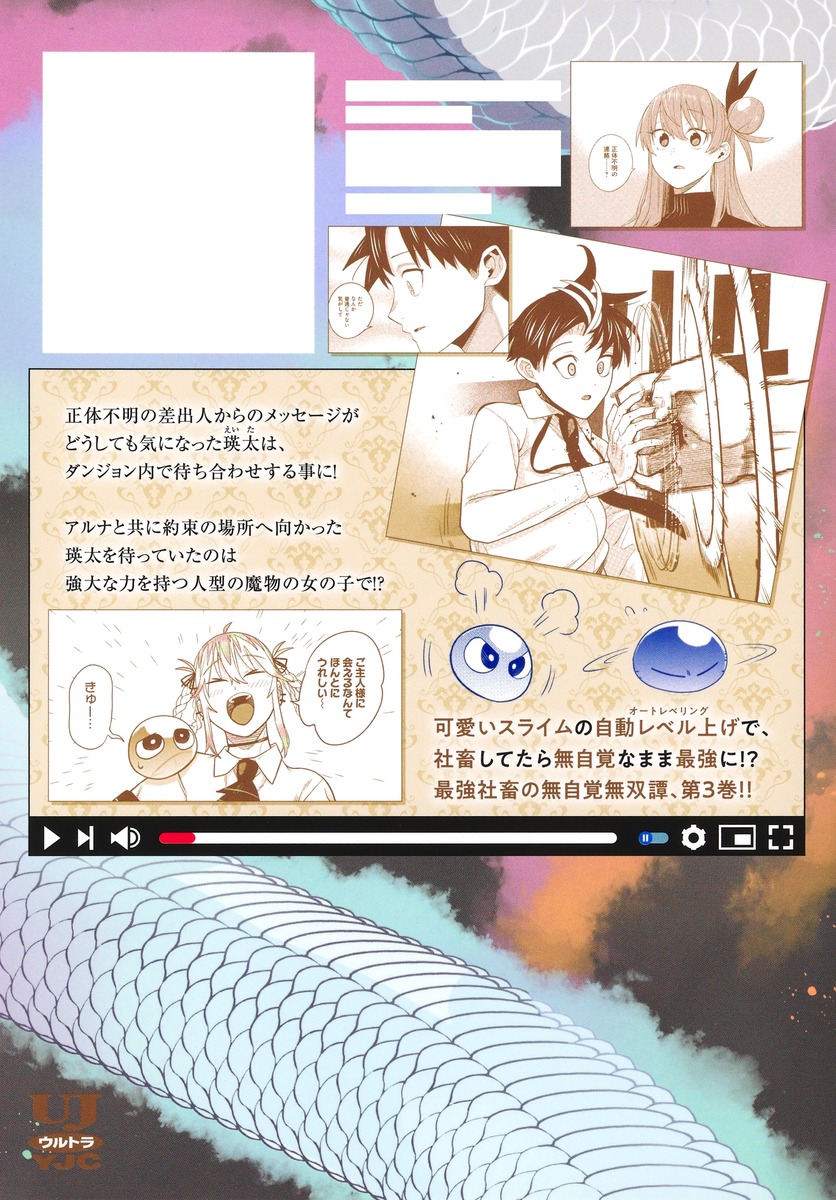 正体不明の差出人からのメッセージがどうしても気になった瑛太は、ダンジョン内で待ち合わせする事に!アルナと共に約束の場所へ向かった瑛太を待っていたのは強大な力を持つ人型の魔物の女の子で!?可愛いスライムの自動レベル上げで、社畜してたら無自覚なまま最強に!? 最強社畜の無自覚無双譚、第3巻!!