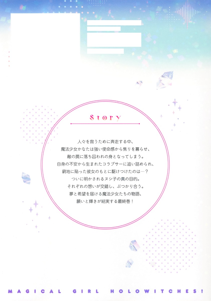 人々を救うために奔走する中、魔法少女かなたは強い使命感から焦りを募らせ、敵の罠に落ち囚われの身となってしまう。自身の不安から生まれたコラプサーに追い詰められ、窮地に陥った彼女のもとに駆けつけたのは…? ついに明かされるヌシ子の真の目的。それぞれの想いが交錯し、ぶつかり合う。夢と希望を届ける魔法少女たちの物語、願いと輝きが結実する最終巻!