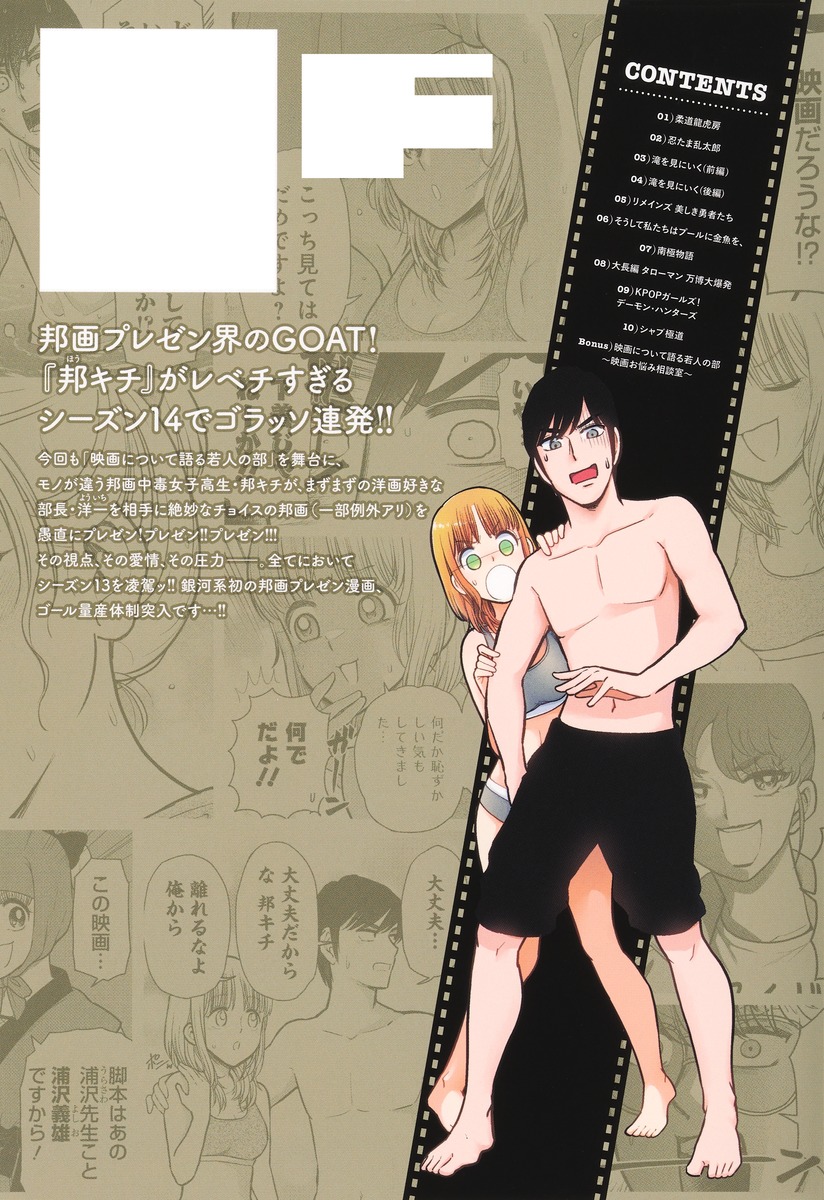 今回も「映画について語る若人の部」を舞台に、モノが違う邦画中毒女子高生・邦キチが、まずまずの洋画好きな部長・洋一を相手に絶妙なチョイスの邦画(一部例外アリ)を愚直にプレゼン! プレゼン!! プレゼン!!! その視点、その愛情、その圧力──。全てにおいてシーズン13を凌駕ッ!! 銀河系初の邦画プレゼン漫画、ゴール量産体制突入です…!!